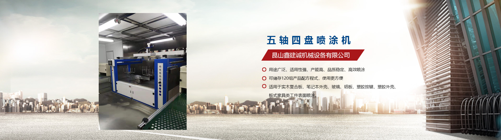 昆山鑫建誠(chéng)機(jī)械設(shè)備有限公司自2009年涉足于自動(dòng)噴漆機(jī)設(shè)備行業(yè),是一家專(zhuān)業(yè)生產(chǎn)噴涂自動(dòng)化設(shè)備的生產(chǎn)廠家,先后推出了平面往復(fù)式自動(dòng)噴漆機(jī):?jiǎn)屋S至五軸自動(dòng)噴漆機(jī)、立式往復(fù)升降機(jī)等。陸續(xù)推出了六軸/七軸/八軸/九軸往復(fù)機(jī)等自動(dòng)噴漆機(jī)專(zhuān)用機(jī)械手,應(yīng)用到具有弧型且表面復(fù)雜的產(chǎn)品噴涂,昆山鑫建誠(chéng)機(jī)械設(shè)備有限公司推出的往復(fù)機(jī)廣泛應(yīng)用于塑膠、五金、木器、裝飾建材、汽車(chē)摩托車(chē)配件等領(lǐng)域。我們秉承“專(zhuān)業(yè),專(zhuān)注,誠(chéng)信,互利”的原則,積極引入臺(tái)灣技術(shù),充分發(fā)揮公司多位高級(jí)機(jī)械結(jié)構(gòu)工程師、自動(dòng)化工程師以及自動(dòng)噴漆機(jī)系統(tǒng)工程